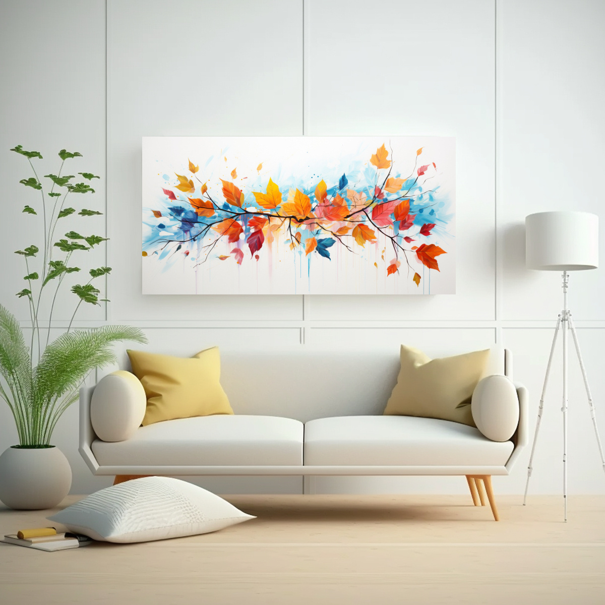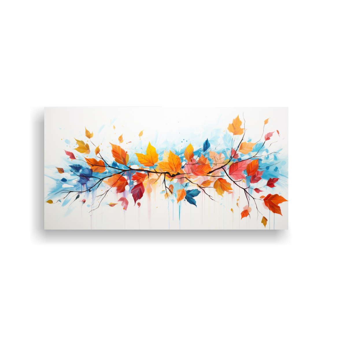 Cuadro Moderno Lienzo Con Hojas Coloridas Y Salpicaduras
