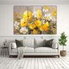 Cuadro Moderno Lienzo Tela Combinación Amarillo Y Plata Flores Decorativas