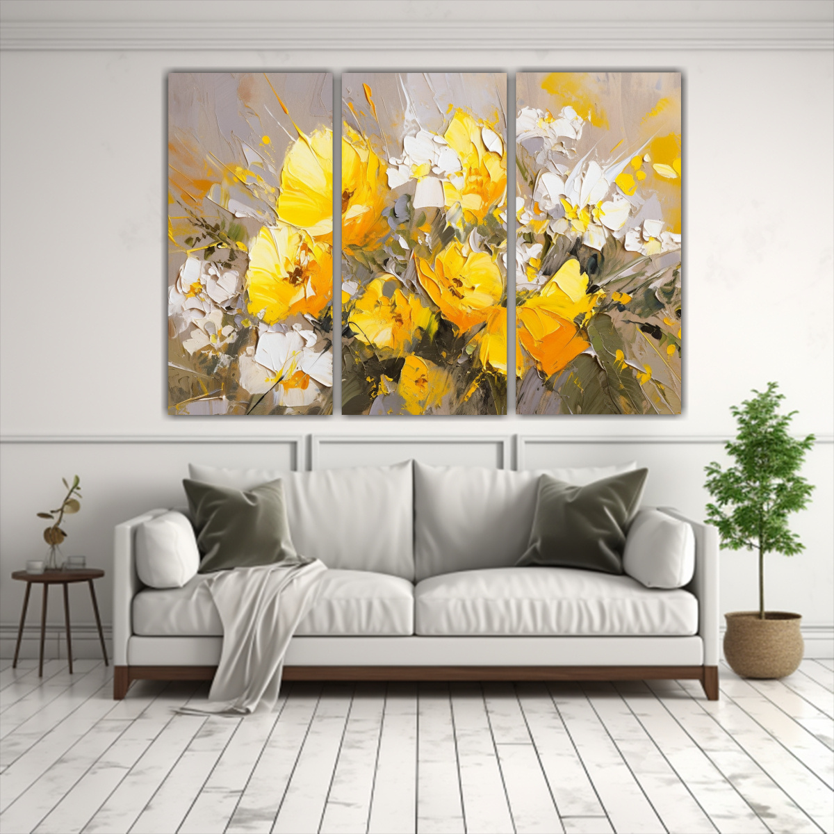 Renueva tu espacio con este moderno cuadro de lienzo en tonos amarillo y plata Ideal para salas, dormitorios o espacios de descanso Envío gratuito en Santiago y envíos express a regiones Calidad y diseño único