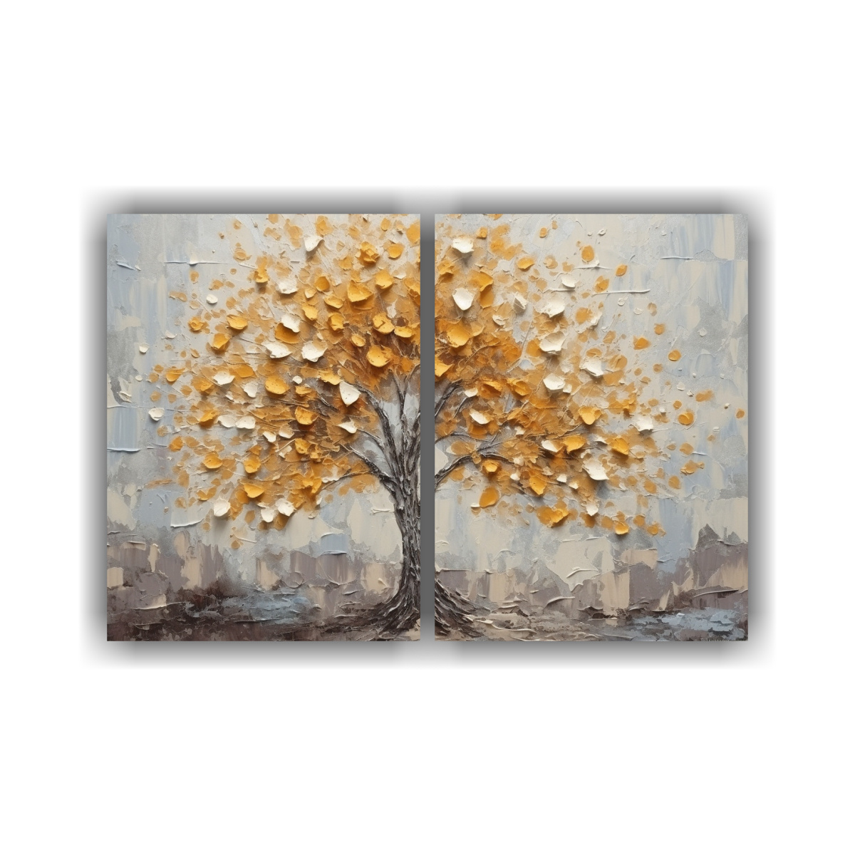 Cuadro Moderno Otoño: Lienzos Decorativos Con Hojas Bajo árbol.