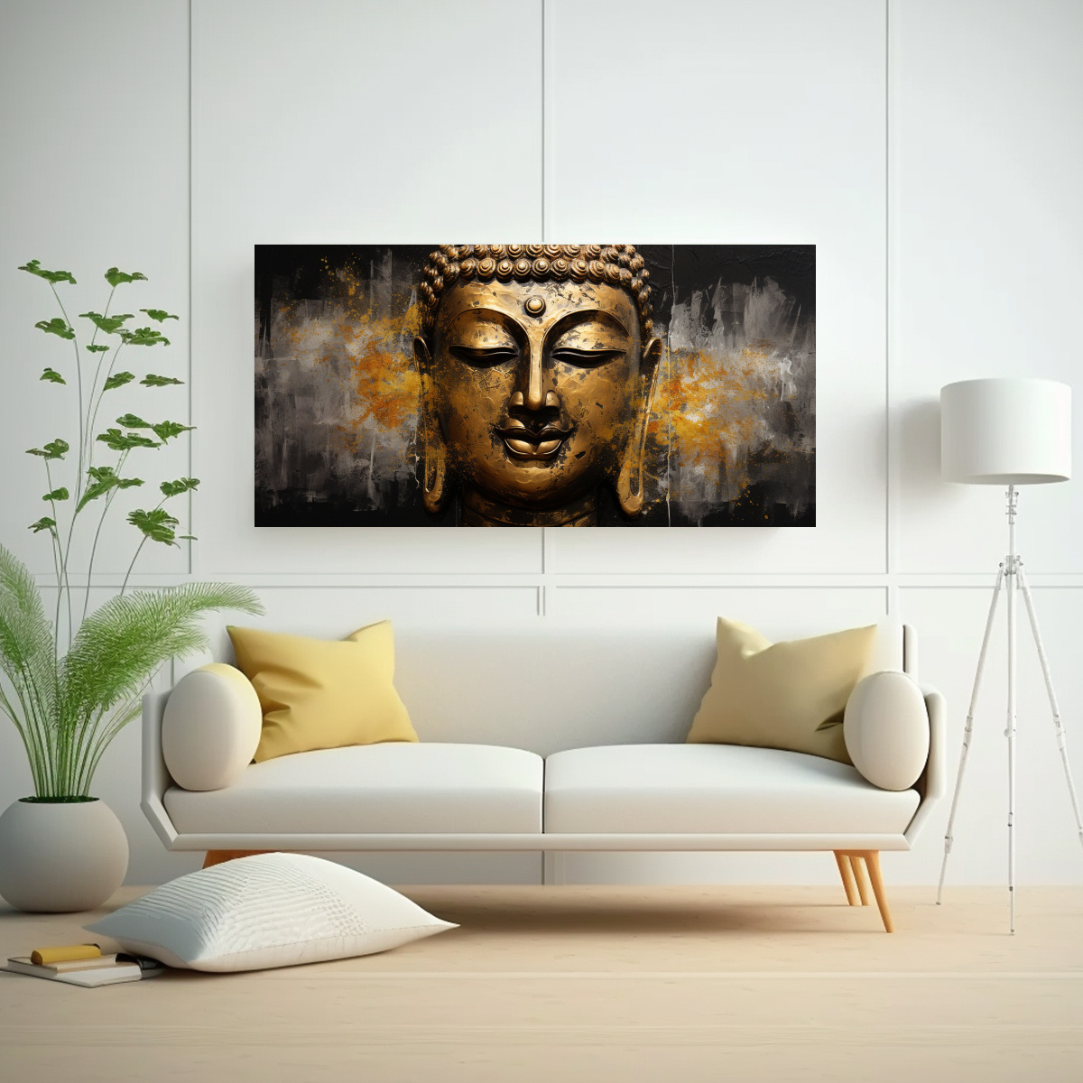 Cuadro Moderno Para Cocina Estilo Abstracto De óleo Con Rostro De Buda En Dorado Y Negro