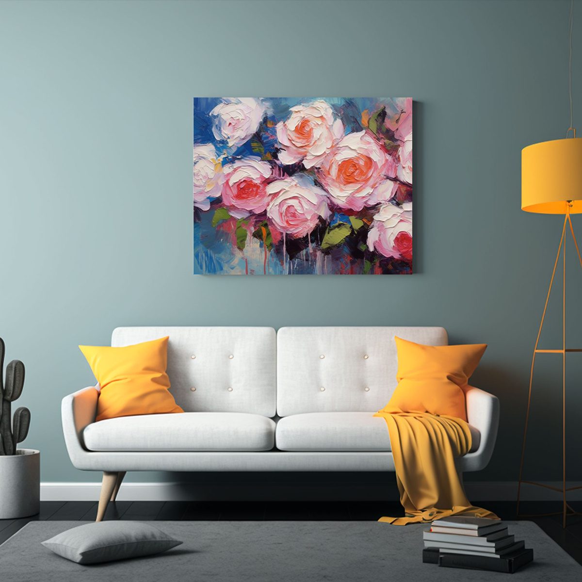Nuestros cuadros son perfectos para decorar cualquier espacio El ramo abstracto de rosas le dará un toque de elegancia y sofisticación a tu hogar Puedes colocarlo en la sala de estar, el comedor o incluso en el dormitorio Crea un ambiente único y acogedor con nuestros cuadros modernos