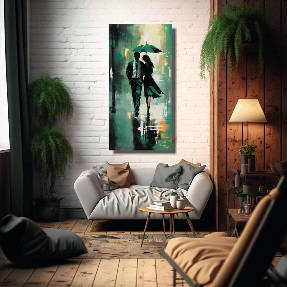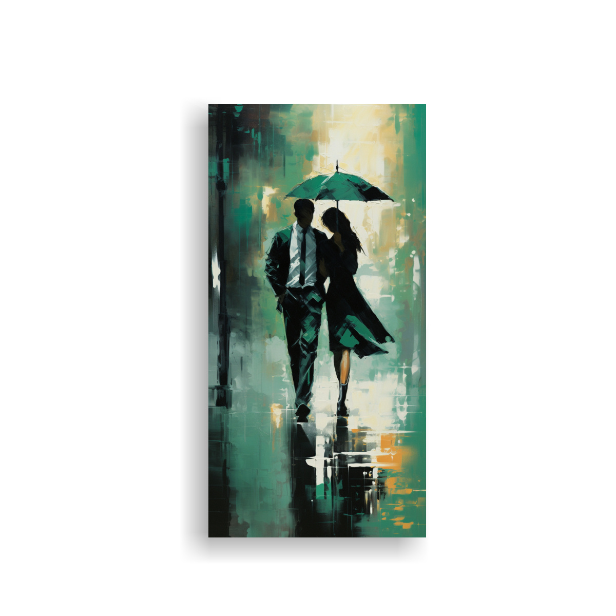 Cuadro Moderno Simetría: Caminando Bajo La Lluvia En El Arte De Decoración De Pinturas.
