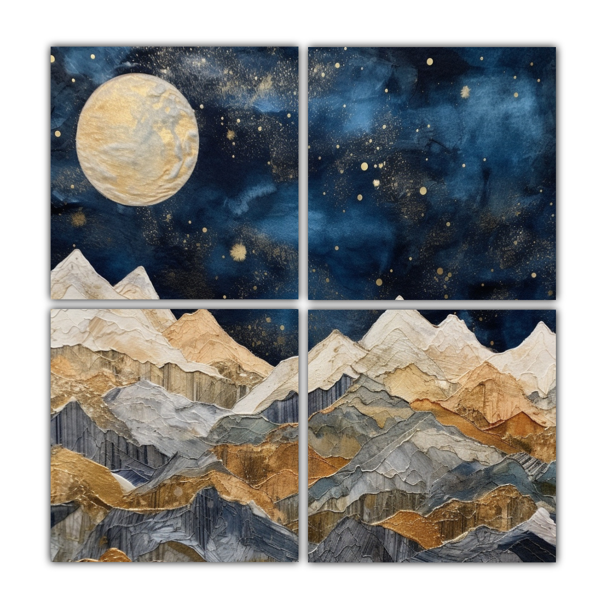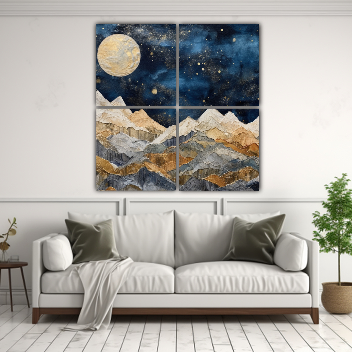 Decora tu espacio con este hermoso cuadro de montañas colorido con luna en fondo pieza Impreso en tela de alta calidad y montado en un bastidor de madera, este cuadro le dará un toque especial a cualquier ambiente Los colores plateado, azul marino grisaceo, gris, verde azulado, negro y carmesi se combinan de forma armoniosa, creando una pieza única y llamativa En DecoCuadros, ofrecemos la mejor calidad del mercado a precios económicos, para que puedas disfrutar de arte exclusivo sin gastar de más Además, garantizamos entregas rápidas y gratuitas en Santiago, y envíos express a regiones