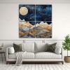 Cuadro Montañas Colorido Con Luna En Fondo Pieza.