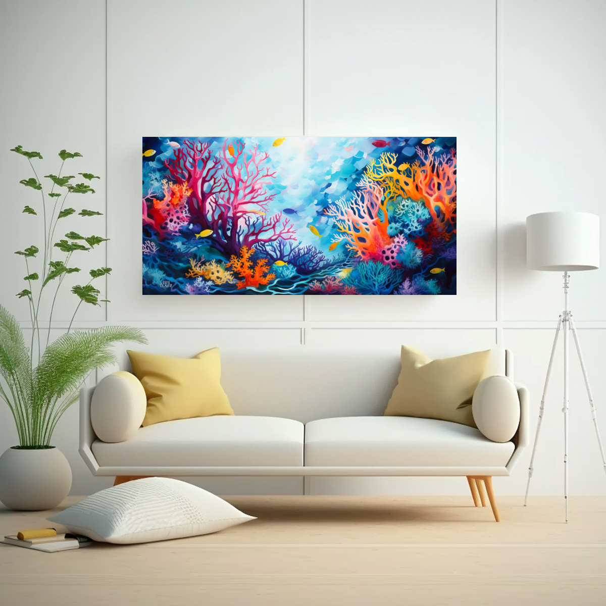 Este cuadro multicolor Vanguardia Coral Submarino es ideal para decorar espacios modernos y contemporáneos Combínalo con muebles en tonos neutros y accesorios en colores similares para crear un ambiente armonioso y relajante Colócalo en el salón, la sala de estar o el dormitorio para darle vida y estilo a tus paredes