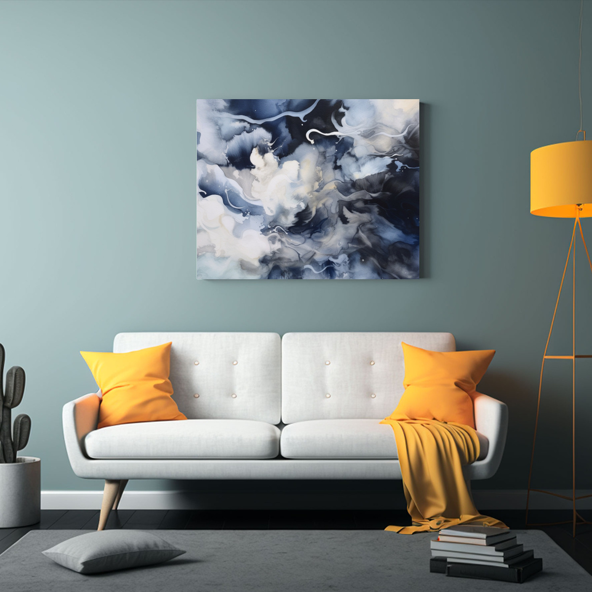 Coloca este cuadro en tu sala de estar para crear un ambiente sereno y elegante Combínalo con muebles blancos y azules para resaltar los tonos del cuadro, creando un espacio armonioso y relajante