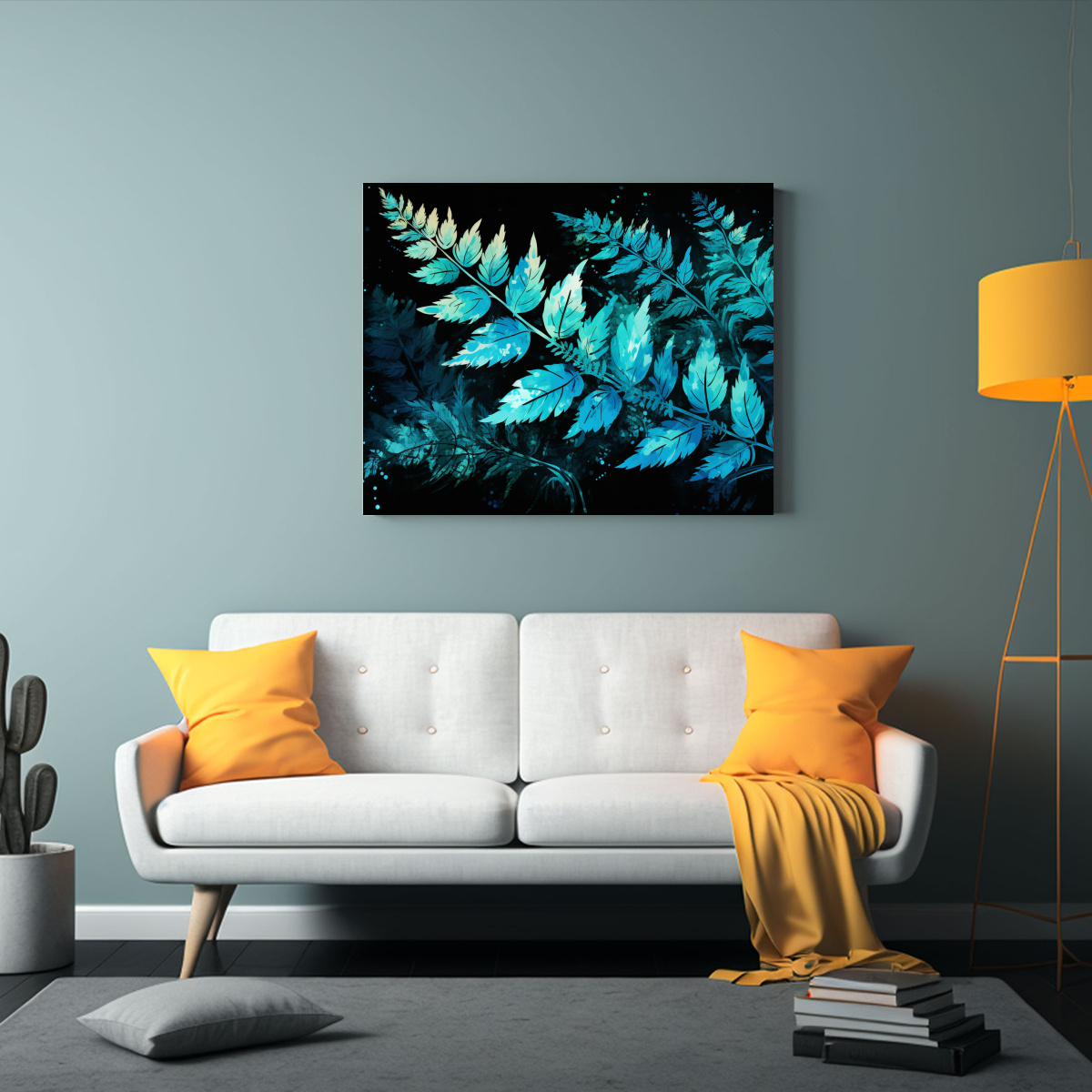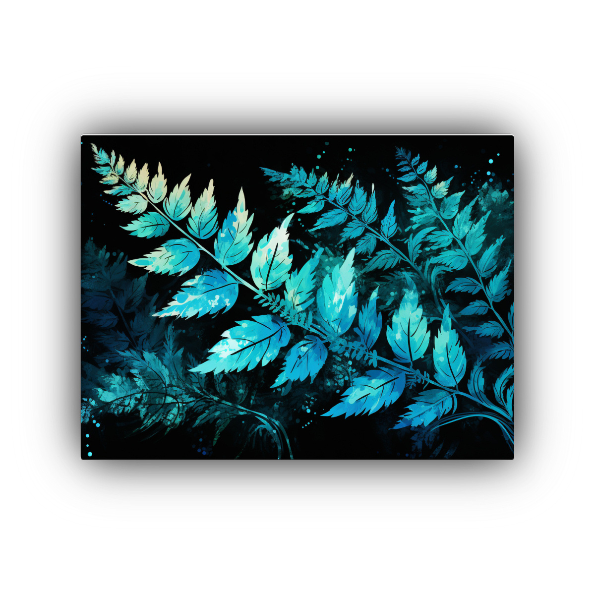 Cuadro Neo De Hojas De Helecho En Turquesa Con Patrón Intenso