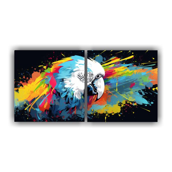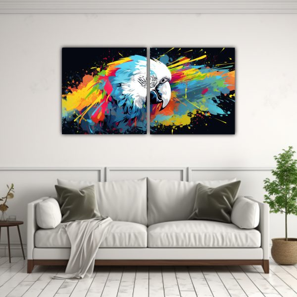 Cuadro Neo Pop Art De Dos Telas Con Patrón Intenso De Guacamayo En Colores Blanco.