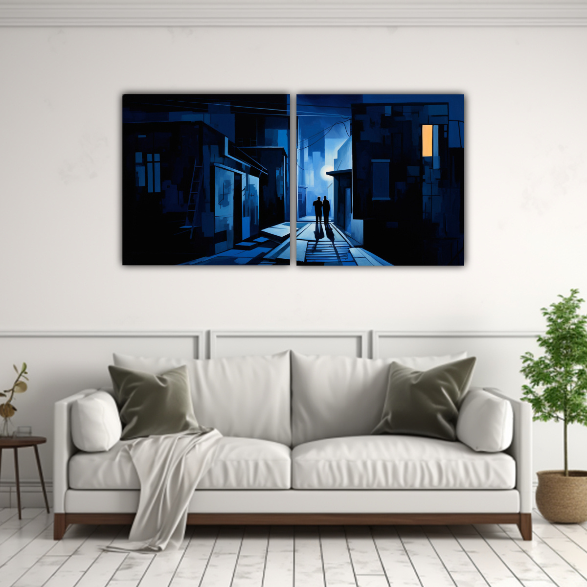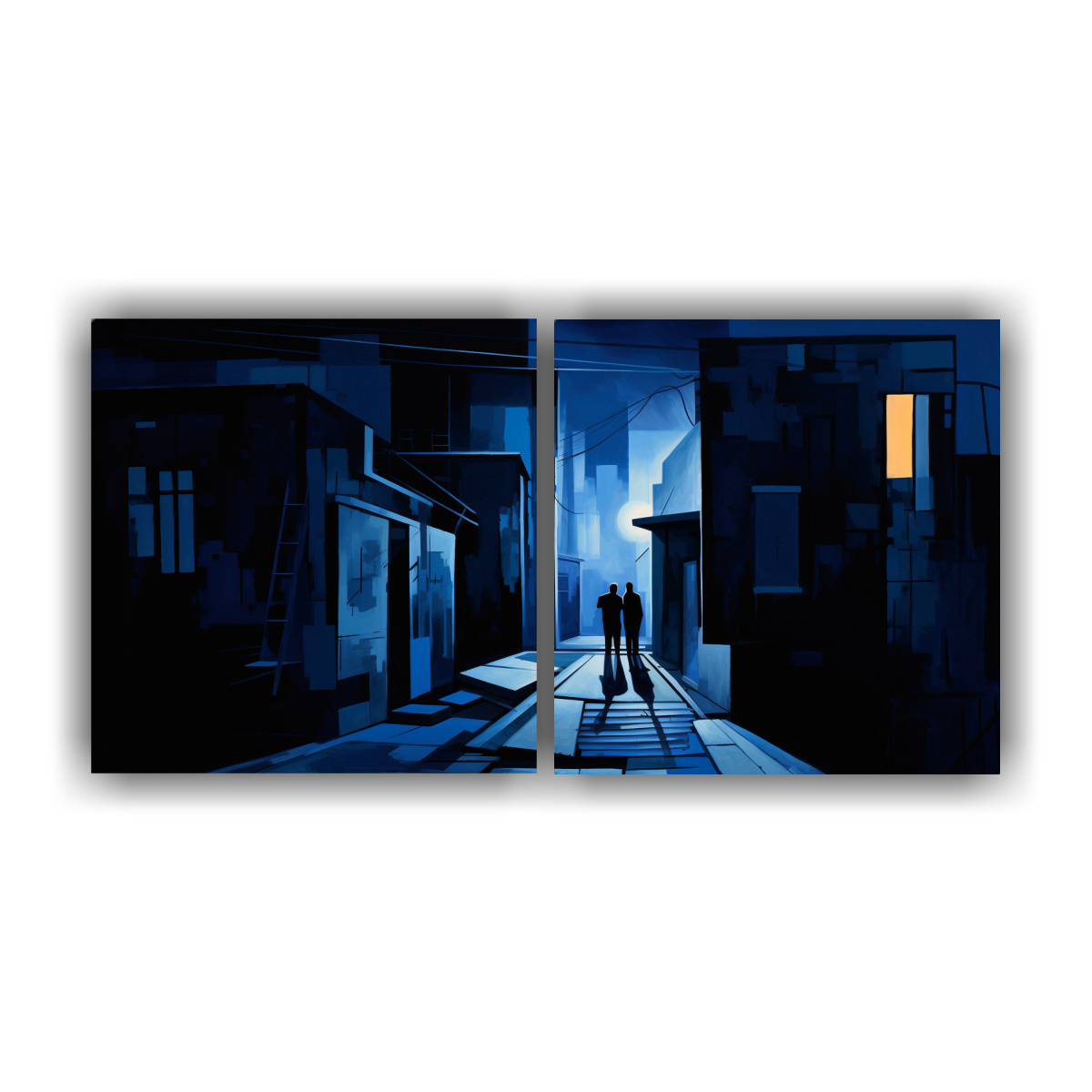 Cuadro Noche Urbana Con Visión Abstracta En Diptico Espectacular