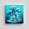 Cuadro Obra Maestra Bonsái En Colores Rosa Y Azul Pintura Abstracta Acuática