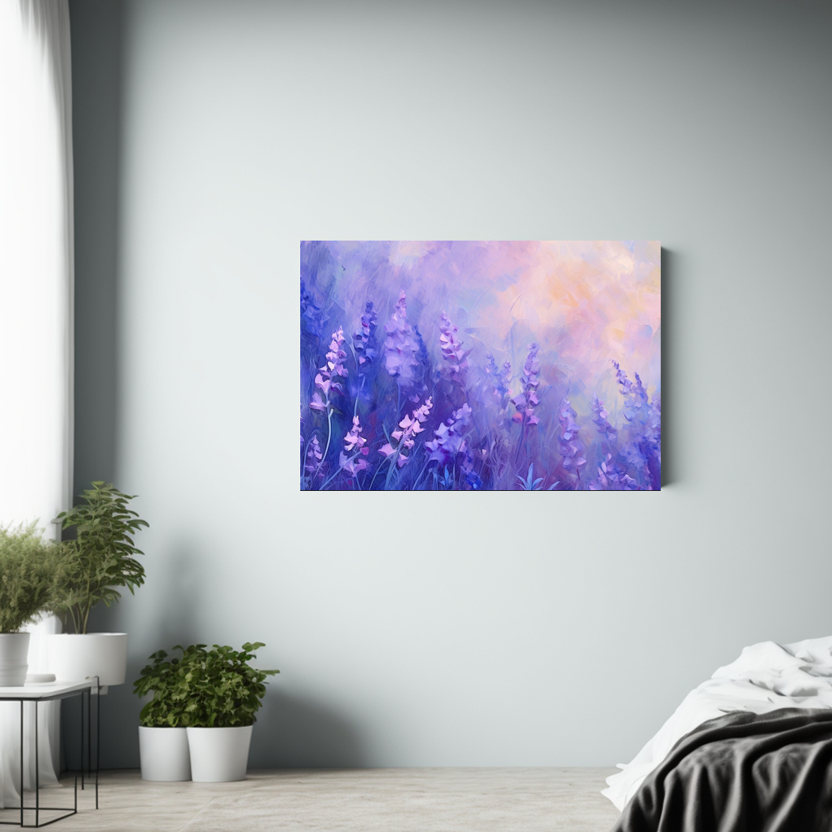 Cuadro óleo Sueño Nebuloso Hojas Lavanda Y Colores Visual Lavanda En Bastidor