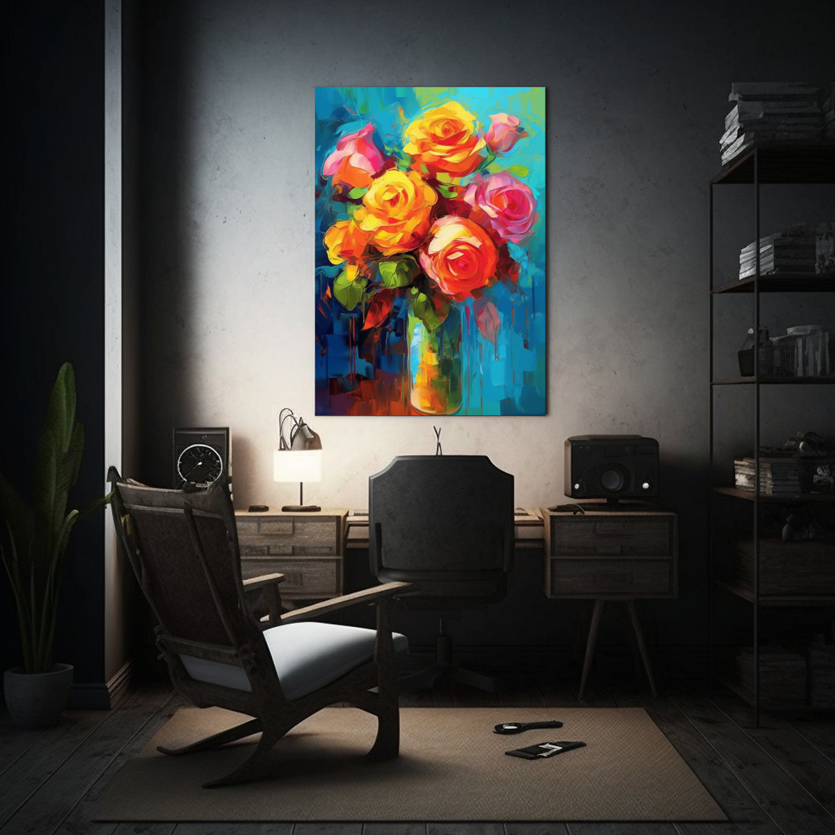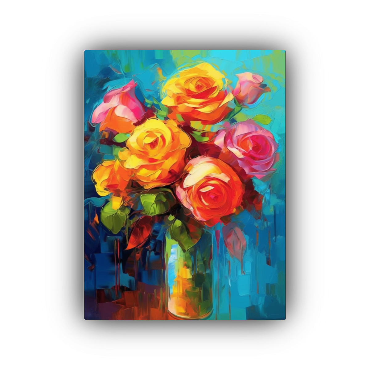 Cuadro Original En Bastidor Estilo Acuarela Rosas Al Estilo De Peter Max