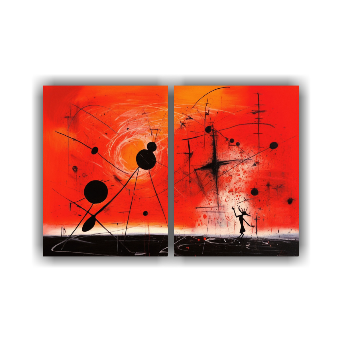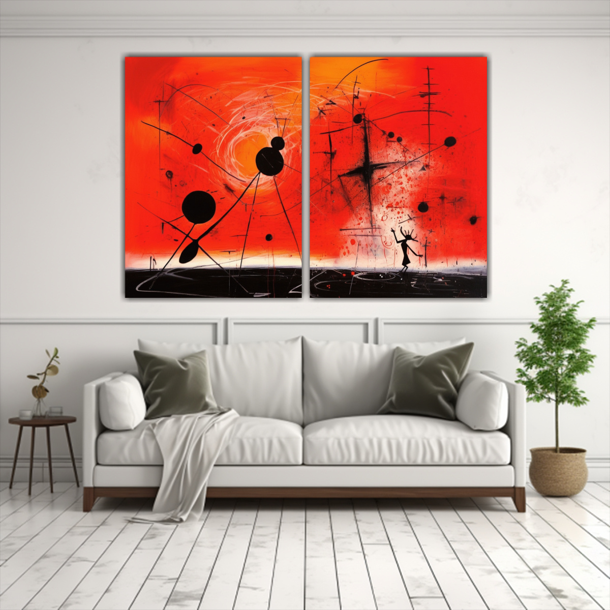 Cuadro Original En Negro Sobre Lienzo Rojo Estilo Decorativo.