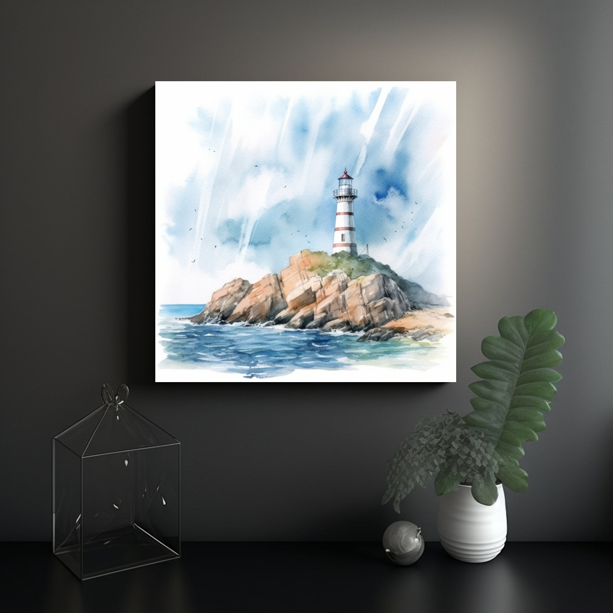 Cuadro Paisaje Acuarela Faro Mar Nubes Estilo Esbozo Impreso Económico