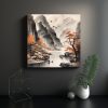 Cuadro Paisaje Otoño Montañas Cascada Lago Barca Aves.