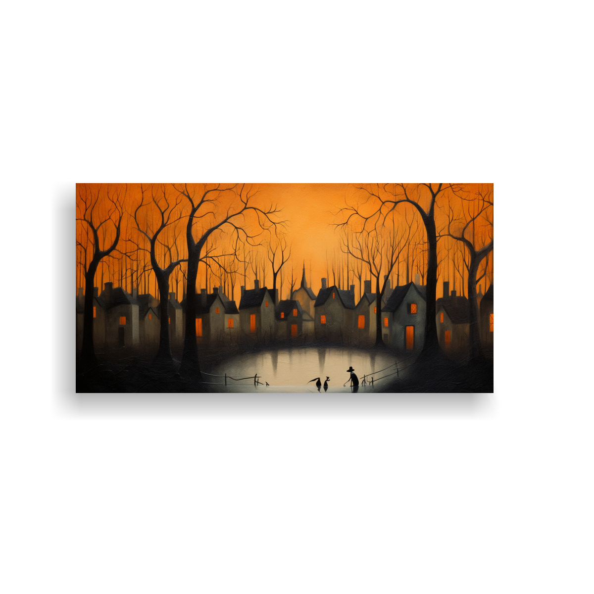 Añade belleza a tu espacio con este cuadro inspirador que muestra varias casas en un lago, combinando tonos azul marino grisáceo y carmesí DecoCuadros ofrece la mejor calidad y precios económicos en cuadros decorativos