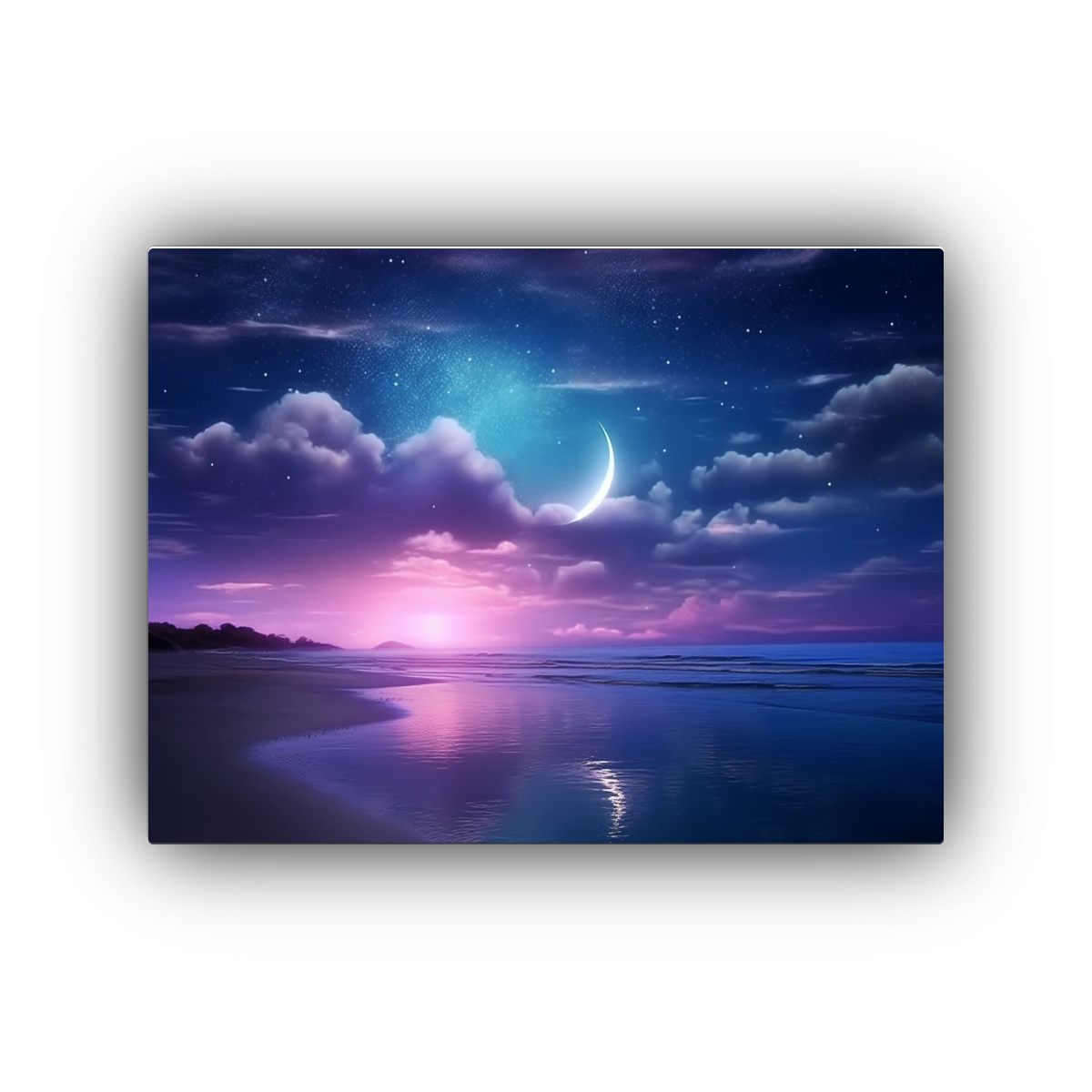 Cuadro Pared Acuarela Composición Dinámica Cielo Nocturno Sobre Agua Con Luna Y Estrellas.