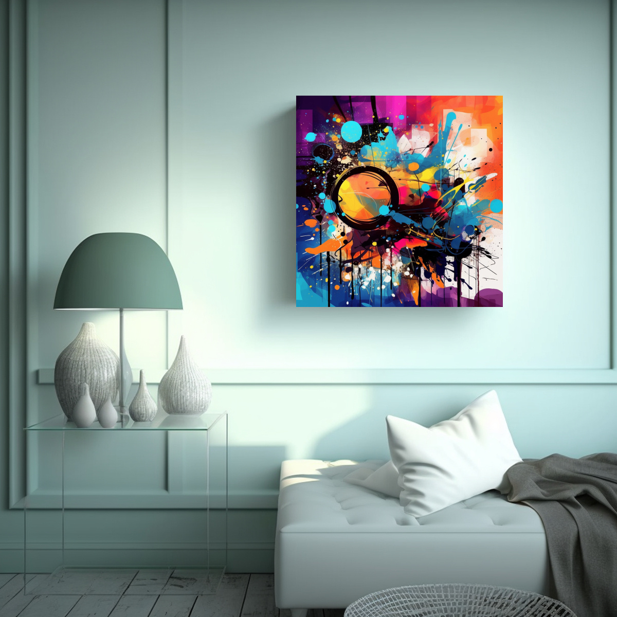 ¿Quieres darle un toque único a tu sala? Coloca el cuadro Patron intenso Para Sala en la pared principal para que se convierta en el punto focal de la habitación Combina este cuadro con muebles en tonos neutros o blancos para resaltar su intensidad y estilo grunge Además, puedes complementar la decoración con cojines en los colores presentes en el cuadro para lograr una armonía visual ¡Atrévete a crear un ambiente moderno y lleno de personalidad con este cuadro!