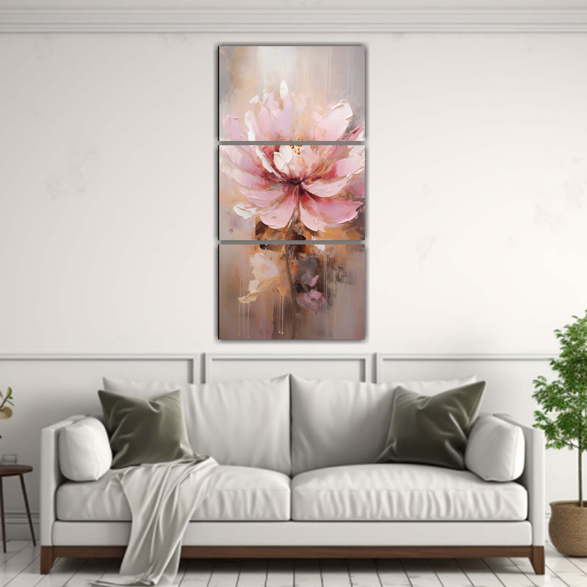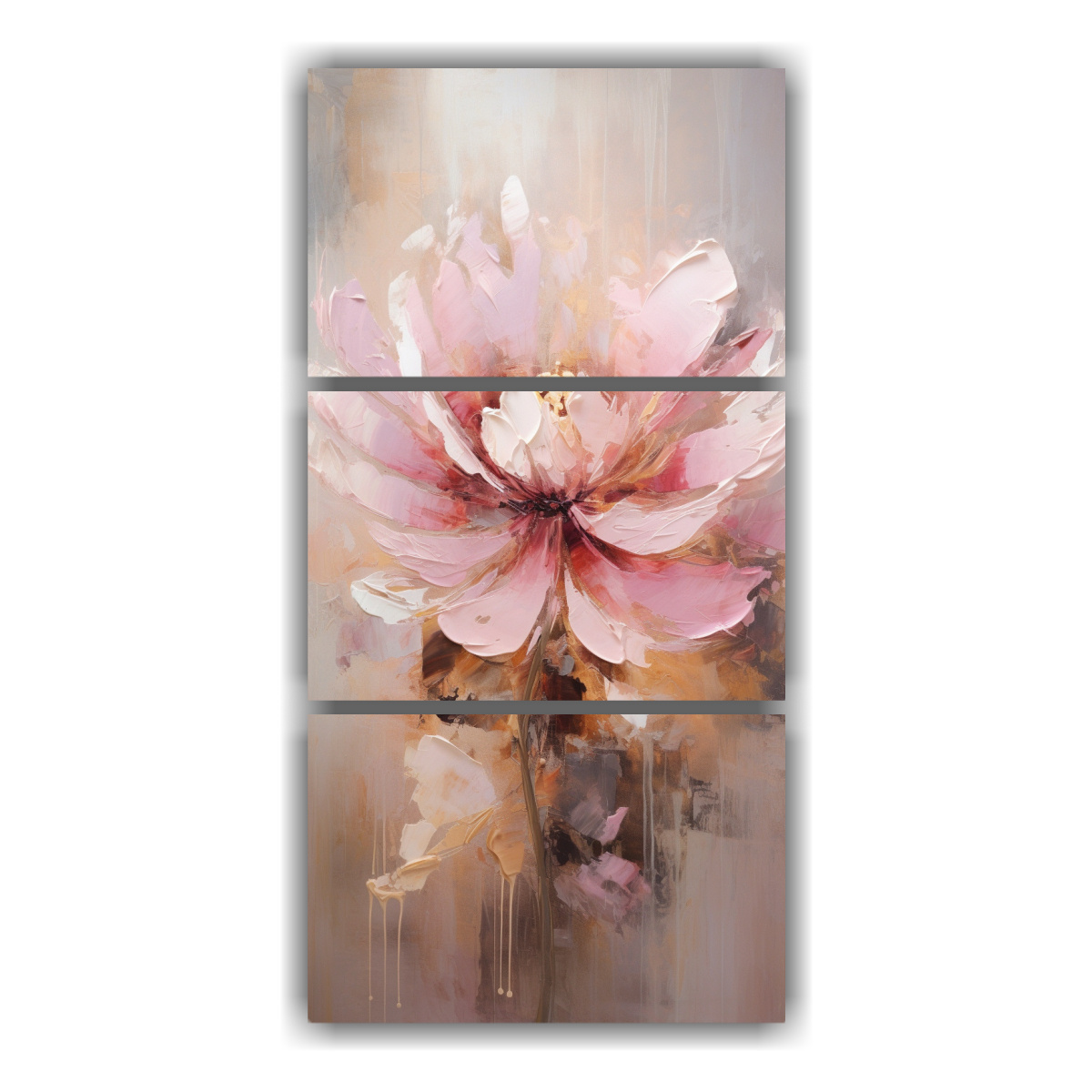 Cuadro Patron Intenso Simetría: Pintura Floral Rosa En Lienzo Al Estilo De