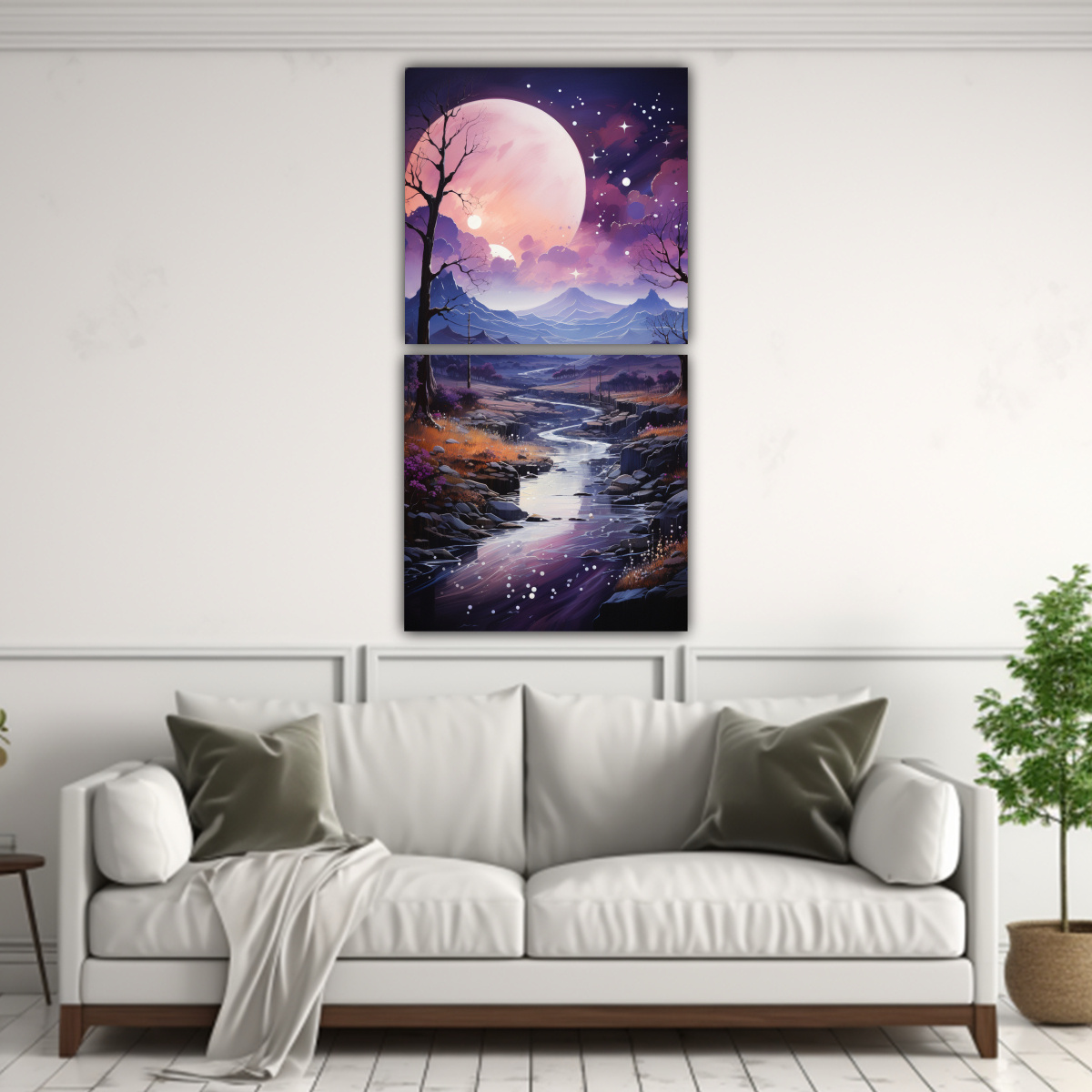 Cuadro Patrón Intenso Visual Luna Montañas Estrelladas