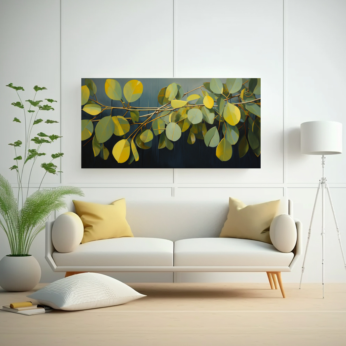 Para realzar la belleza del Cuadro Patrón Intenso Vitalidad Hojas Eucalipto, te recomendamos colgarlo en una pared de tonos neutros para que los colores intensos resalten Combínalo con muebles de diseño minimalista y elementos decorativos en tonos similares para crear un ambiente armonioso y elegante