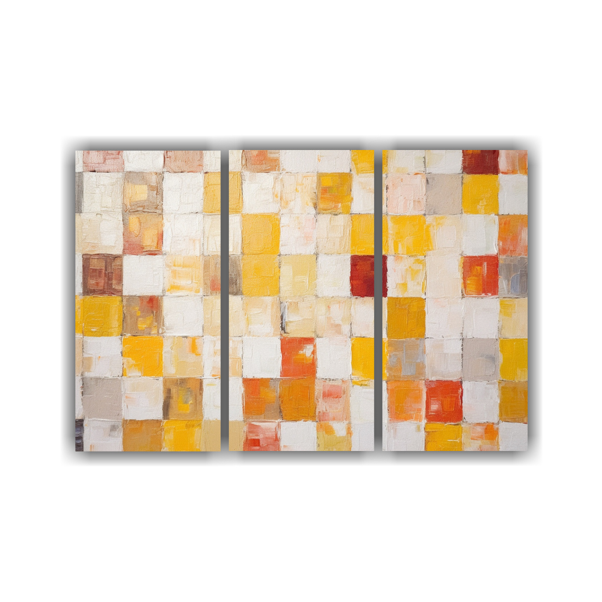 Este cuadro de perspectiva con cuadrados blancos, amarillos y naranjas es ideal para resaltar en una pared de color neutro, como blanco o gris claro Colócalo en tu sala de estar o en el pasillo para crear un punto focal y darle vida a tu ambiente