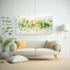 Este cuadro pintura acrílica vintage sin costuras en blanco con detalles en mostaza, dorado, beige, plateado, gris y chocolate es perfecto para decorar la sala de estar o el estudio Combínalo con muebles en tonos neutros como gris o beige para crear un ambiente elegante y sofisticado