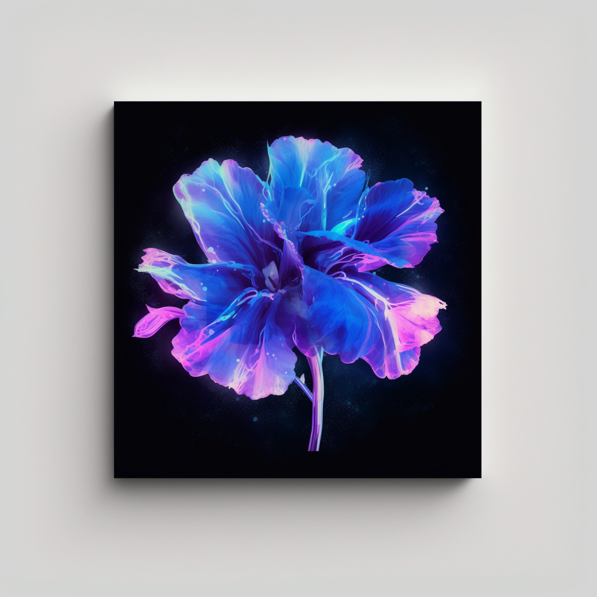 Cuadro Pop Art Bioluminiscente De Flores Lavanda En Tela Bastidor