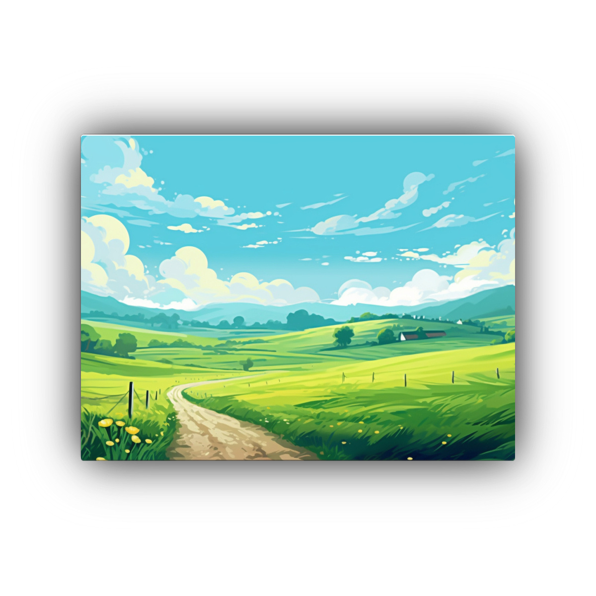 Cuadro Primaveral: Campos De Maíz Y Senderos Coloreados.