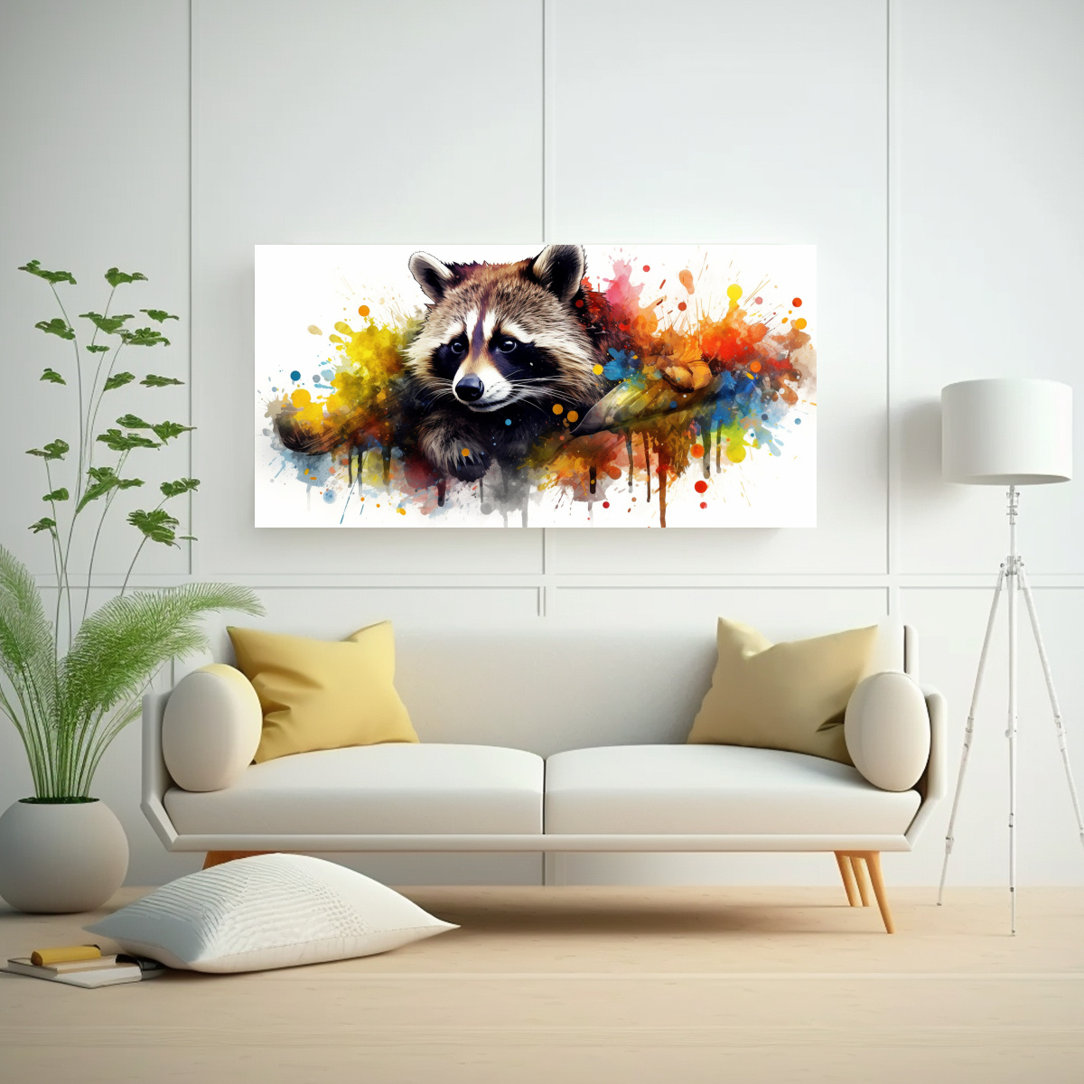 Coloca este Cuadro Raccoon en tu sala de estar para darle un toque de color y dinamismo Combínalo con muebles en tonos neutros para resaltar su vibrante paleta ¡Crea un ambiente moderno y acogedor que sorprenderá a tus invitados!