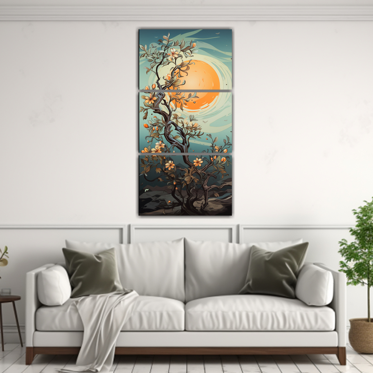 El Set 3 Canvas Dibujo Relieve A Mango Tree in Muted Colors Neo-noir atmosphere neo pop destaca por sus colores Azul Marino grisaceo, Plateado, Coral, Turquesa y Gris Diseños exclusivos y entregas rápidas ¡Compra ya y da vida a tus espacios!