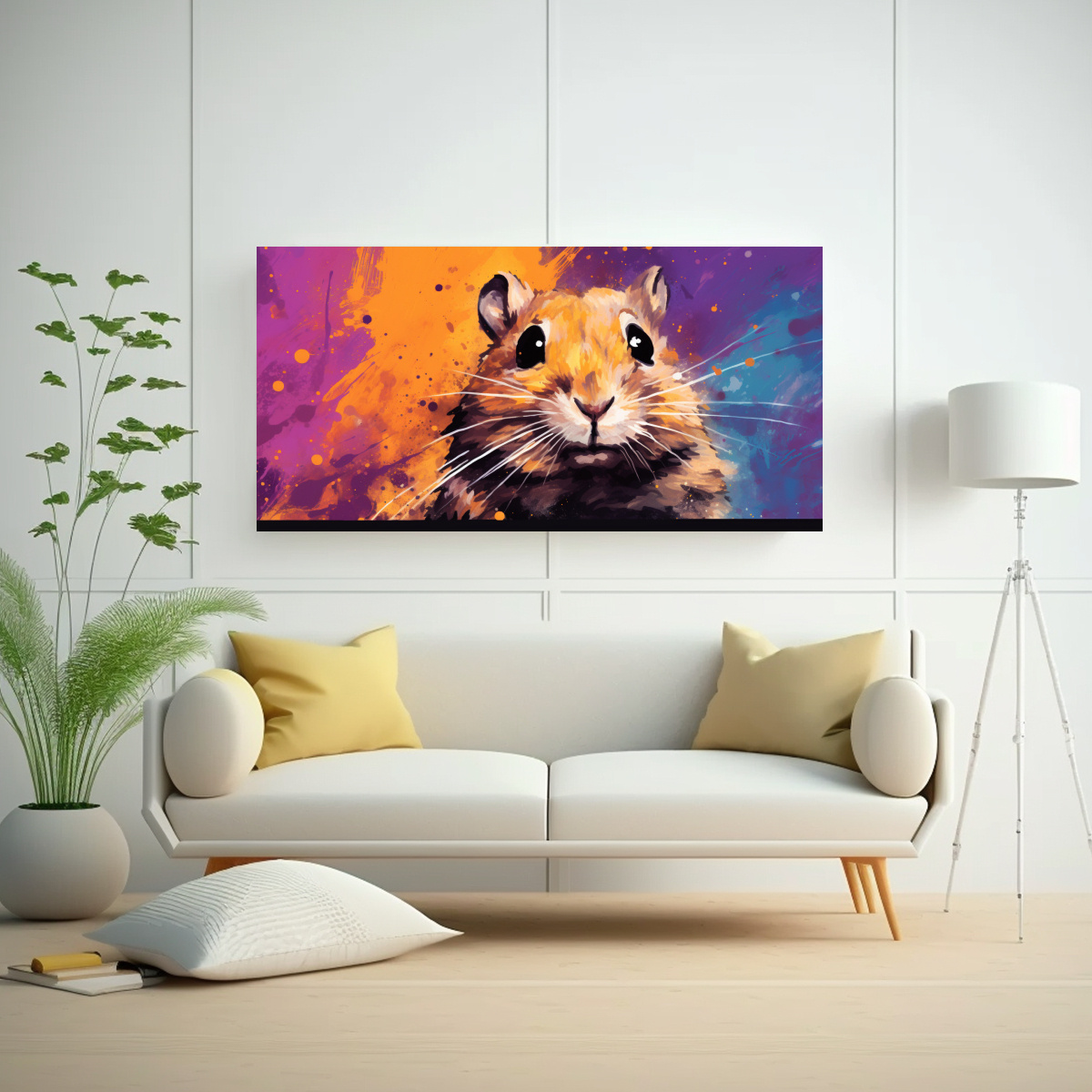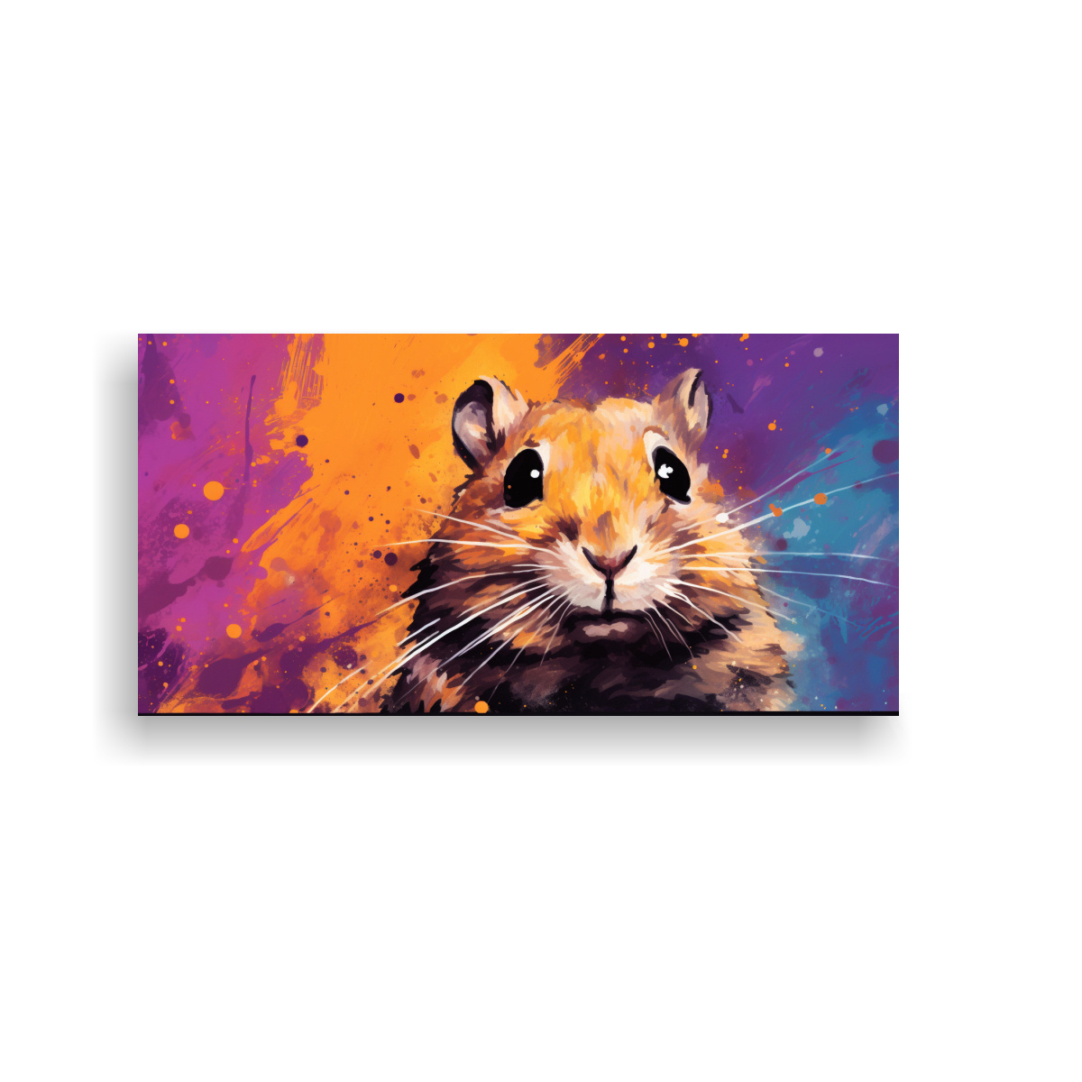 Cuadro Simétrico A Gerbil En Colores Púrpura Y Dorado: Arte Neo Pop.