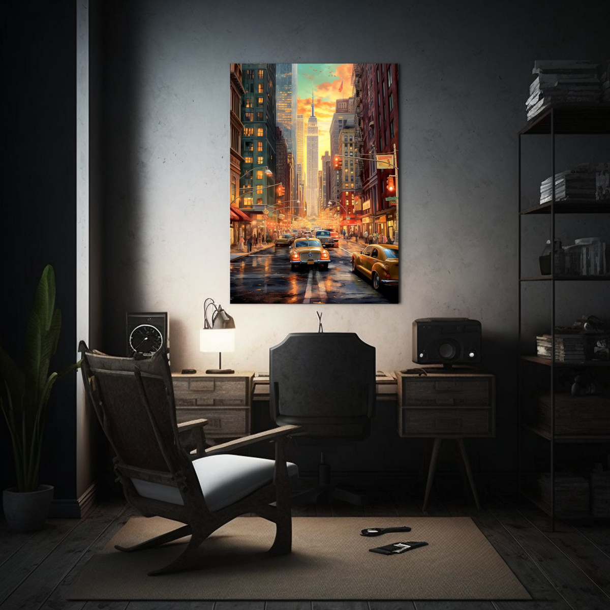Este cuadro surrealista de Nueva York en lienzo se vería espectacular en la sala de estar o en una oficina moderna Combínalo con muebles en tonos neutros para resaltar los colores intensos del cuadro ¡Será el centro de atención de cualquier espacio!