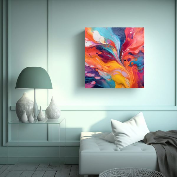 Este cuadro tela abstracto colores vintage Armonia Flowing es perfecto para decorar un salón moderno Colócalo en la pared principal sobre un sofá gris para crear un contraste elegante Combina con cojines en tonos azul marino grisáceo y plateado, y añade un toque de color con accesorios en coral y lila ¡Crea un ambiente armonioso y sofisticado en tu hogar con este cuadro de DecoCuadros!