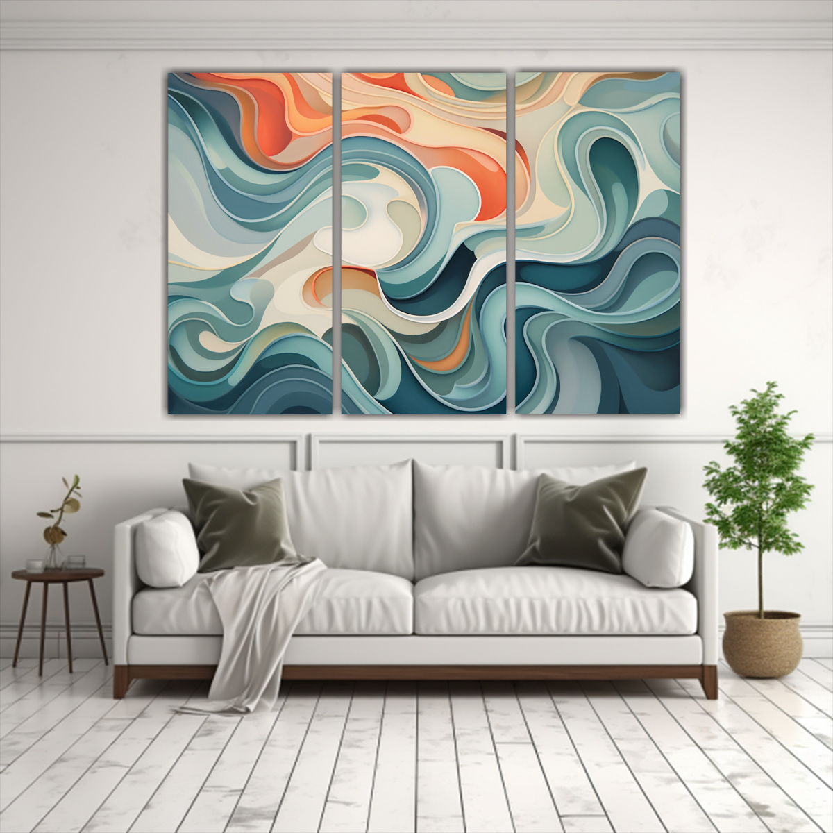 Coloca este set de 3 lienzos en la pared principal de tu dormitorio para crear un punto focal Combina estos colores con cojines, mantas y accesorios en tonos neutros para lograr un equilibrio armonioso en la habitación