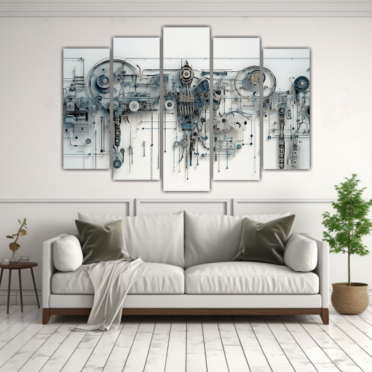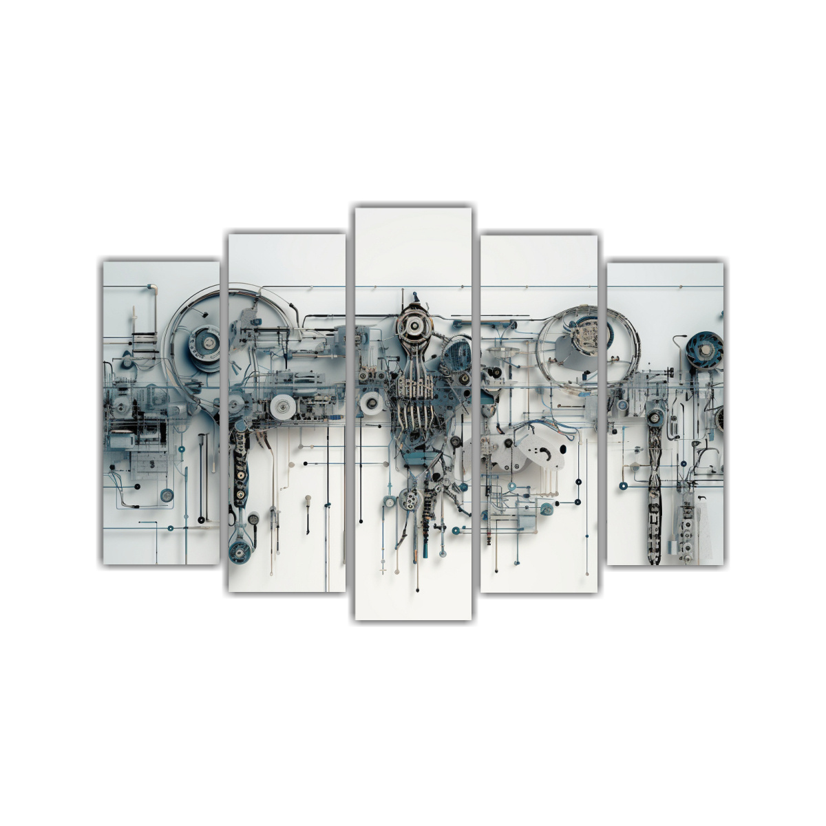 Este cuadro abstracto con temática de maquinaria y objetos robóticos es ideal para decorar espacios modernos como salas de estar o estudios Colócalo sobre un sofá en tonos neutros para crear un contraste llamativo o en una pared de acento para darle protagonismo a la habitación