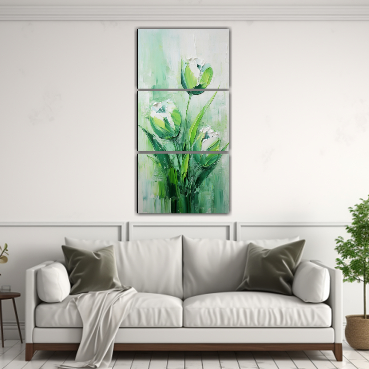 Cuadro Tela Alta Calidad Green TULIPS Estilo Pintura Decorativa