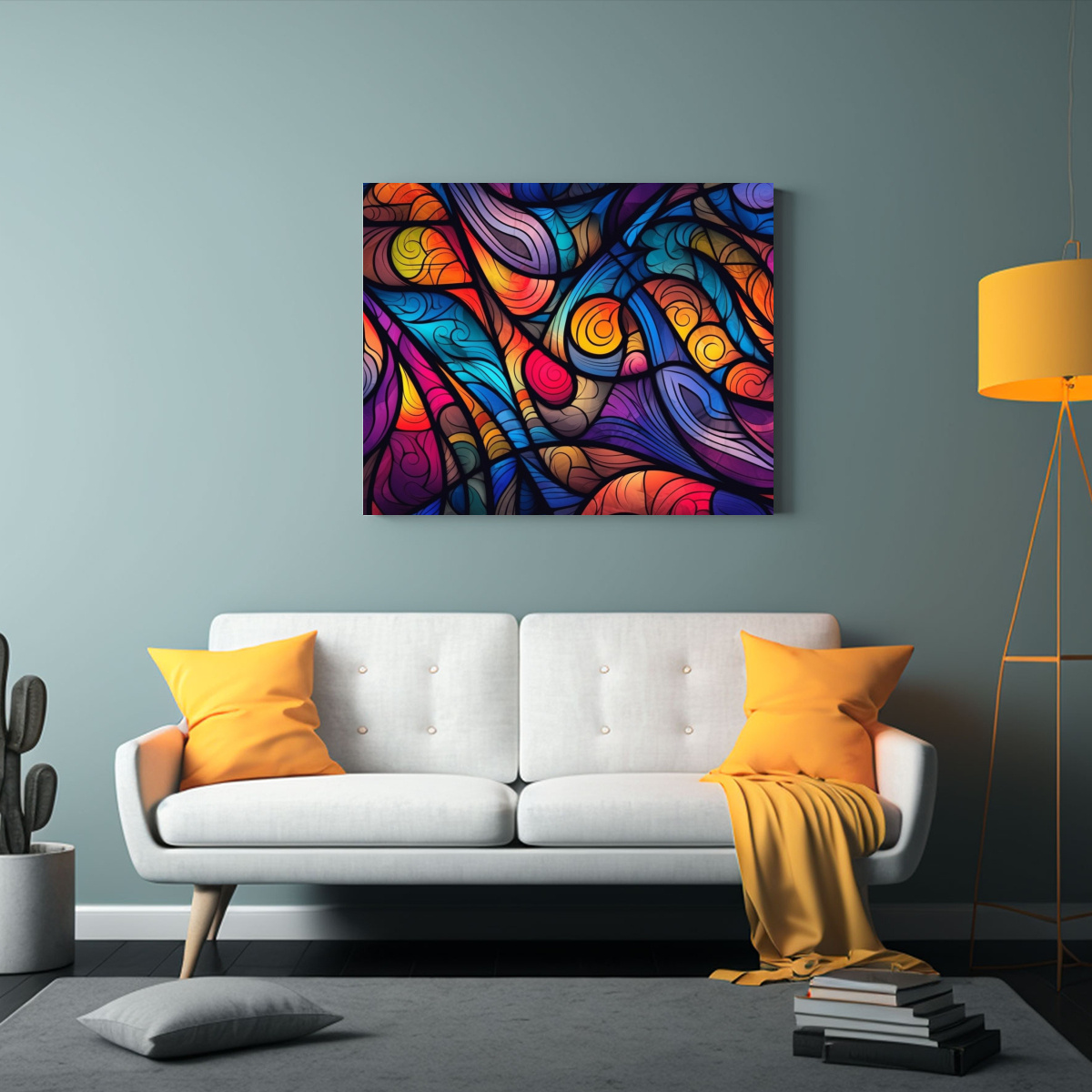 Este cuadro Belleza Vidriera con colores vivos sería ideal para decorar tu sala de estar o comedor, creando un ambiente vibrante y elegante Combínalo con muebles en tonos neutros para resaltar su belleza y darle un toque moderno a tu hogar