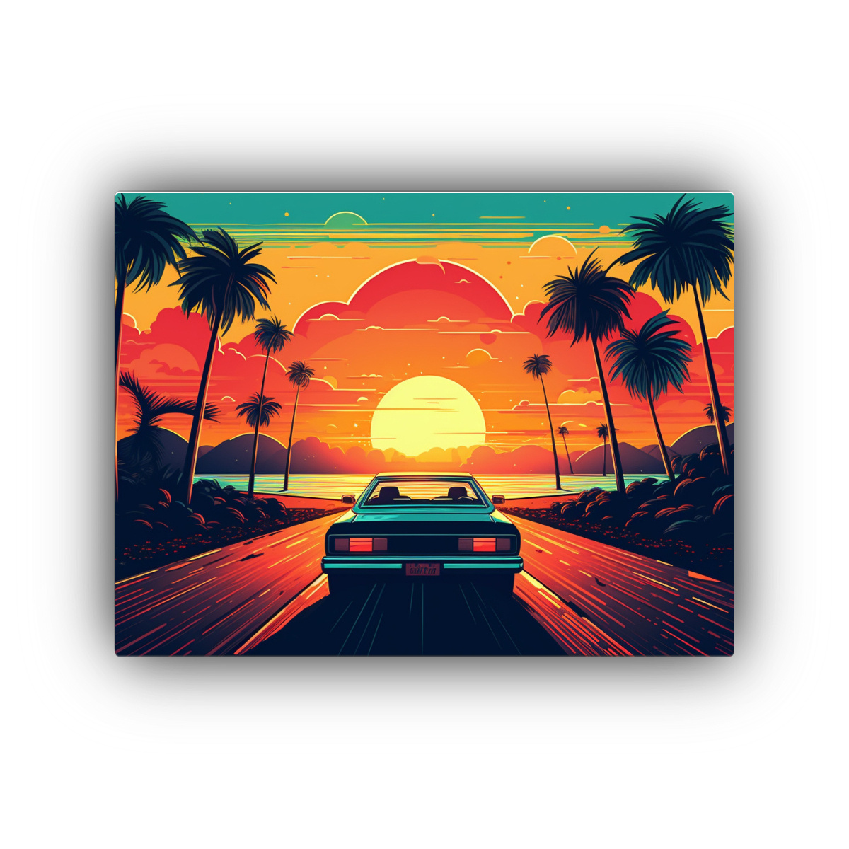 Sumérgete en la riqueza visual de este cuadro Summer vibes 80s style con un coche conduciendo hacia la nostalgia Colores vibrantes como Carmesí, Plateado y más Envío rápido y gratuito en Santiago