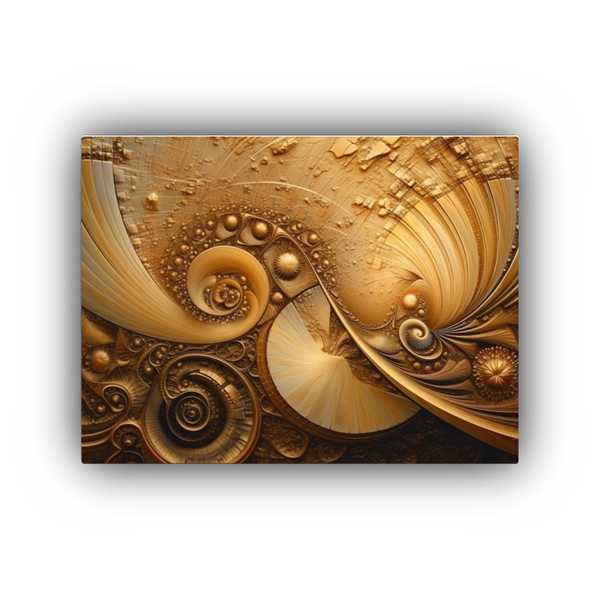 Cuadro Tela Colores Mural Dorado Satinado Y Yute Fractal 3D: Arte Impresionante