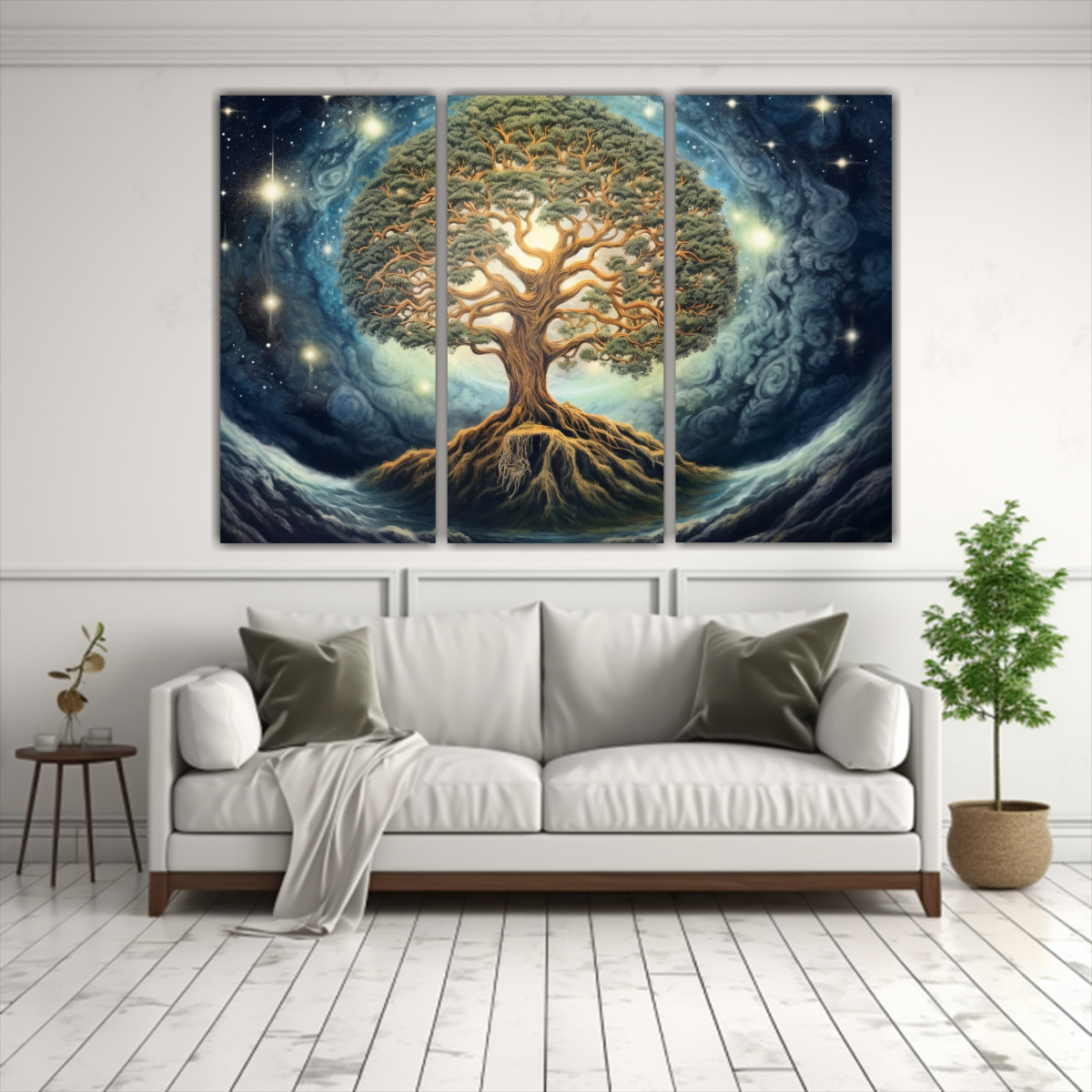 Renueva tu espacio con este cuadro de tela que representa el árbol de la vida, cielo estrellado y luna Perfecto para crear un ambiente único y mágico ¡Compra ahora y disfruta de la mejor calidad!