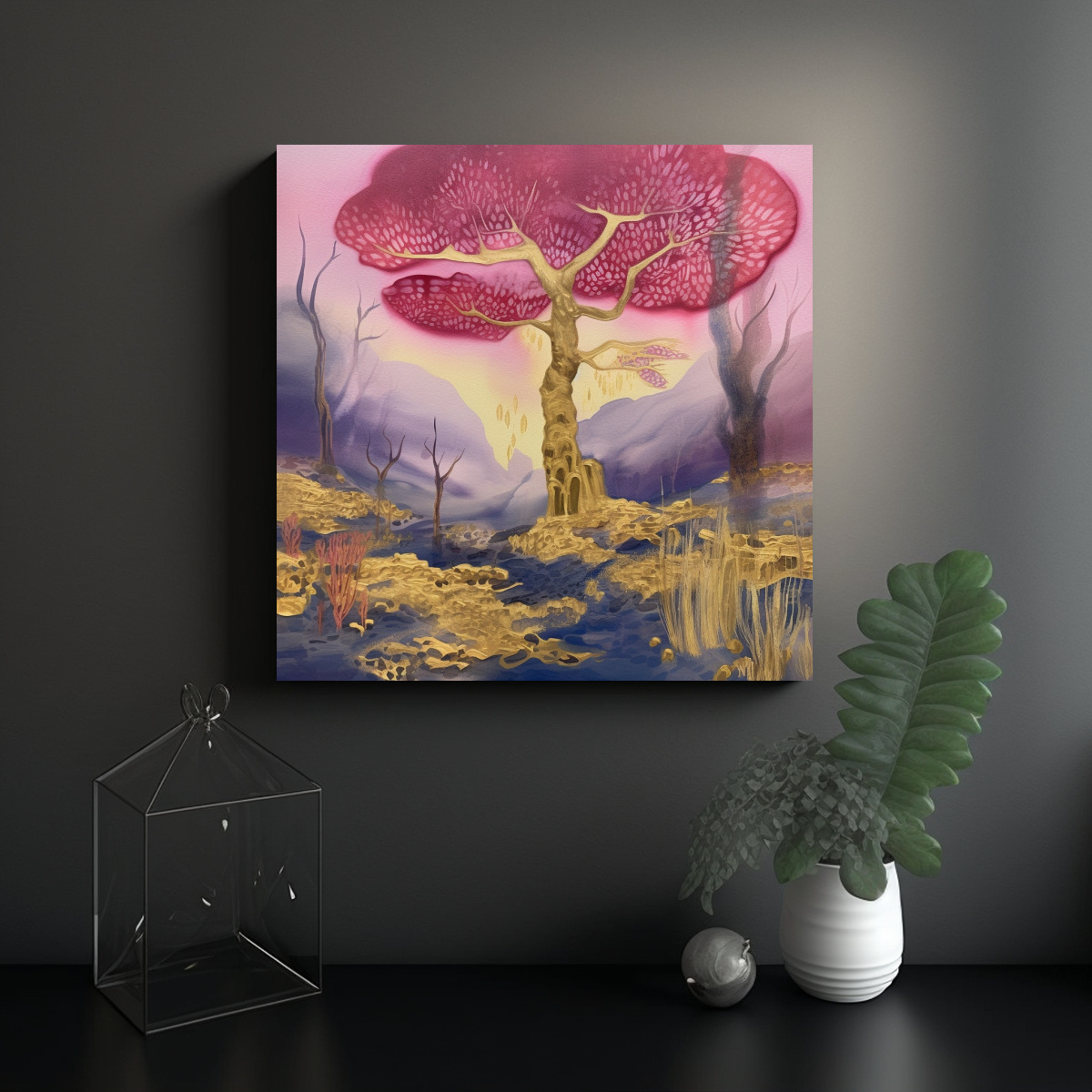 Renueva tu hogar con este cuadro de tela con un diseño exclusivo que transportará tu espacio a un lugar como un sueño, con árboles gigantes en forma de setas en tonos Gris, Azul Marino grisaceo, Lila, Carmesí, Plateado y Chocolate Decora con estilo y originalidad ¡Envíos express a regiones disponibles!