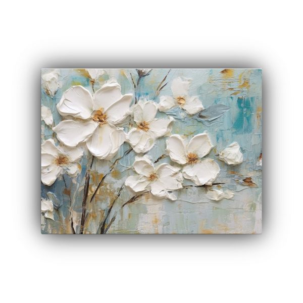 Cuadro Tela Decorativo Hogar Flores Blancas Abstracto Textura Floral Acrílico Vibrante