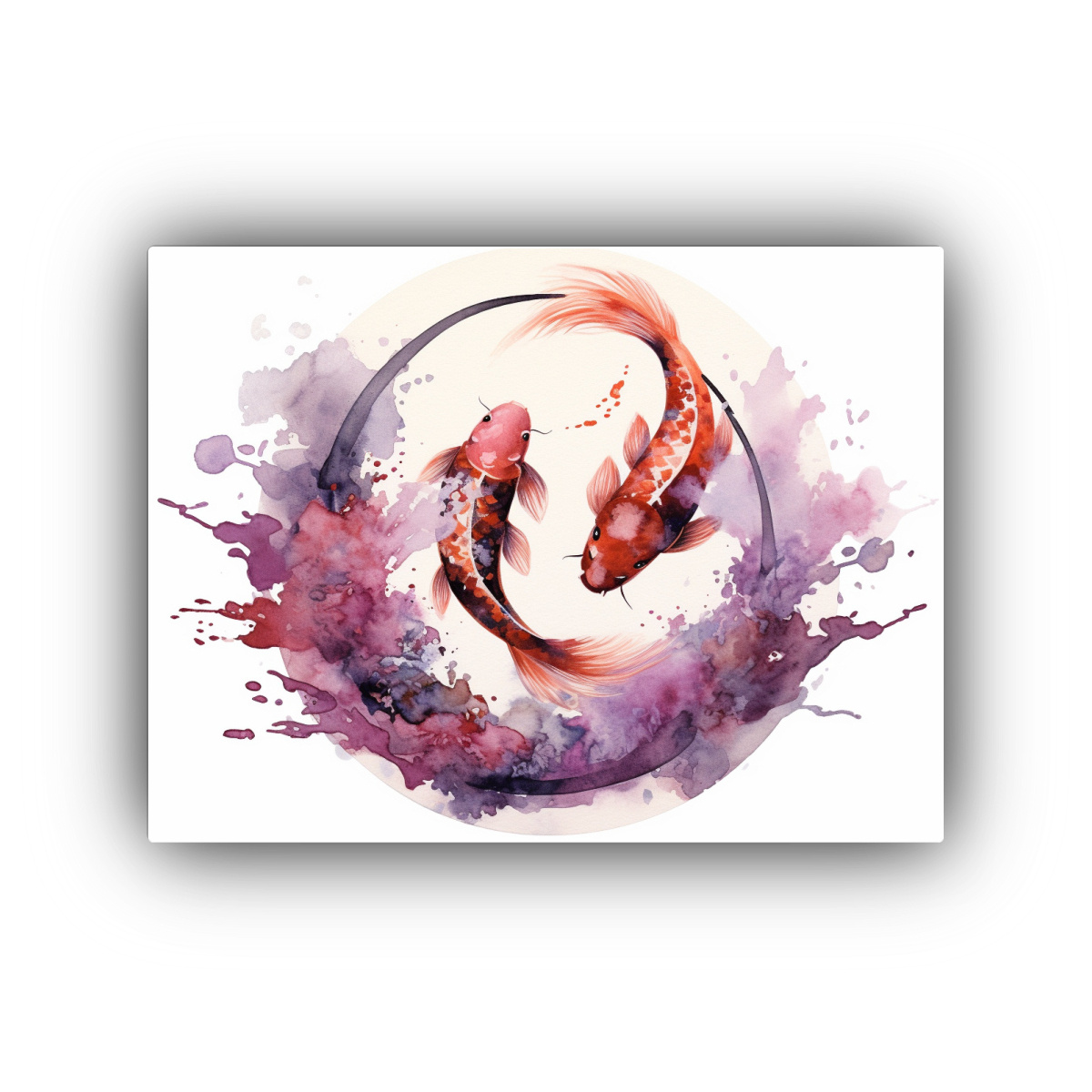 Cuadro Tela Dibujo Acuarela Dos Peces Koi Círculo Ying