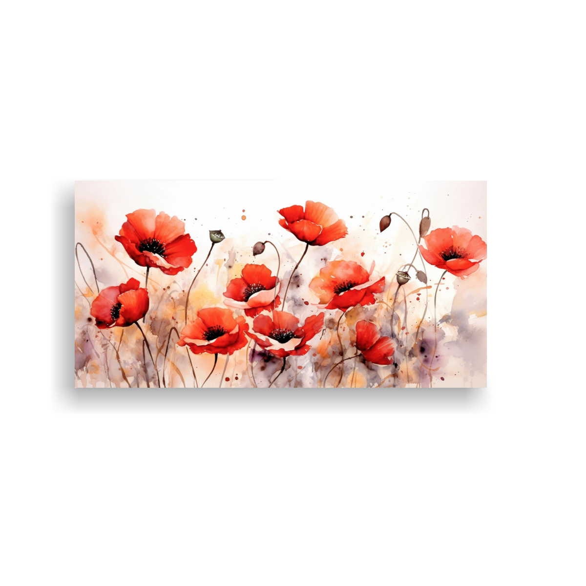 Cuadro Tela Flores De Amapola Rojas Con Simetría En Acuarela Sobre Fondo Blanco