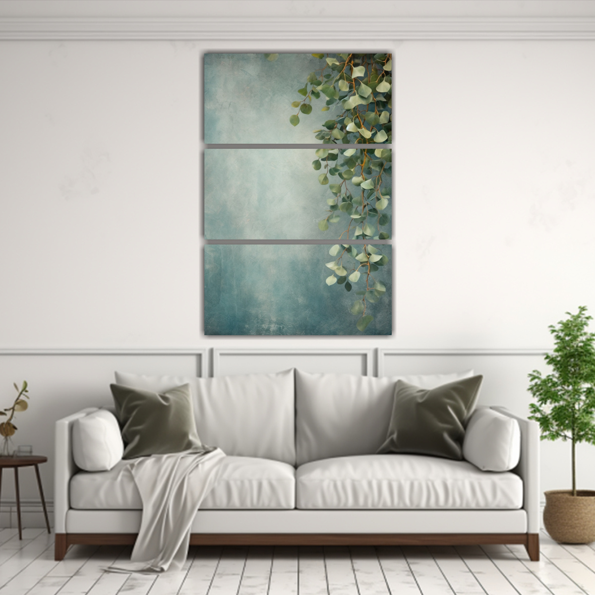 El cuadro Tres Lienzos De Tela Modernos dimensiones Vintage background with eucalyptus biggest part of backg es perfecto para darle a tu hogar un toque sofisticado Los colores Gris, Azul Marino grisaceo y Plateado se combinan en una imagen que transmite serenidad y estilo DecoCuadros ofrece los mejores precios del mercado y entrega rápida y gratuita en Santiago