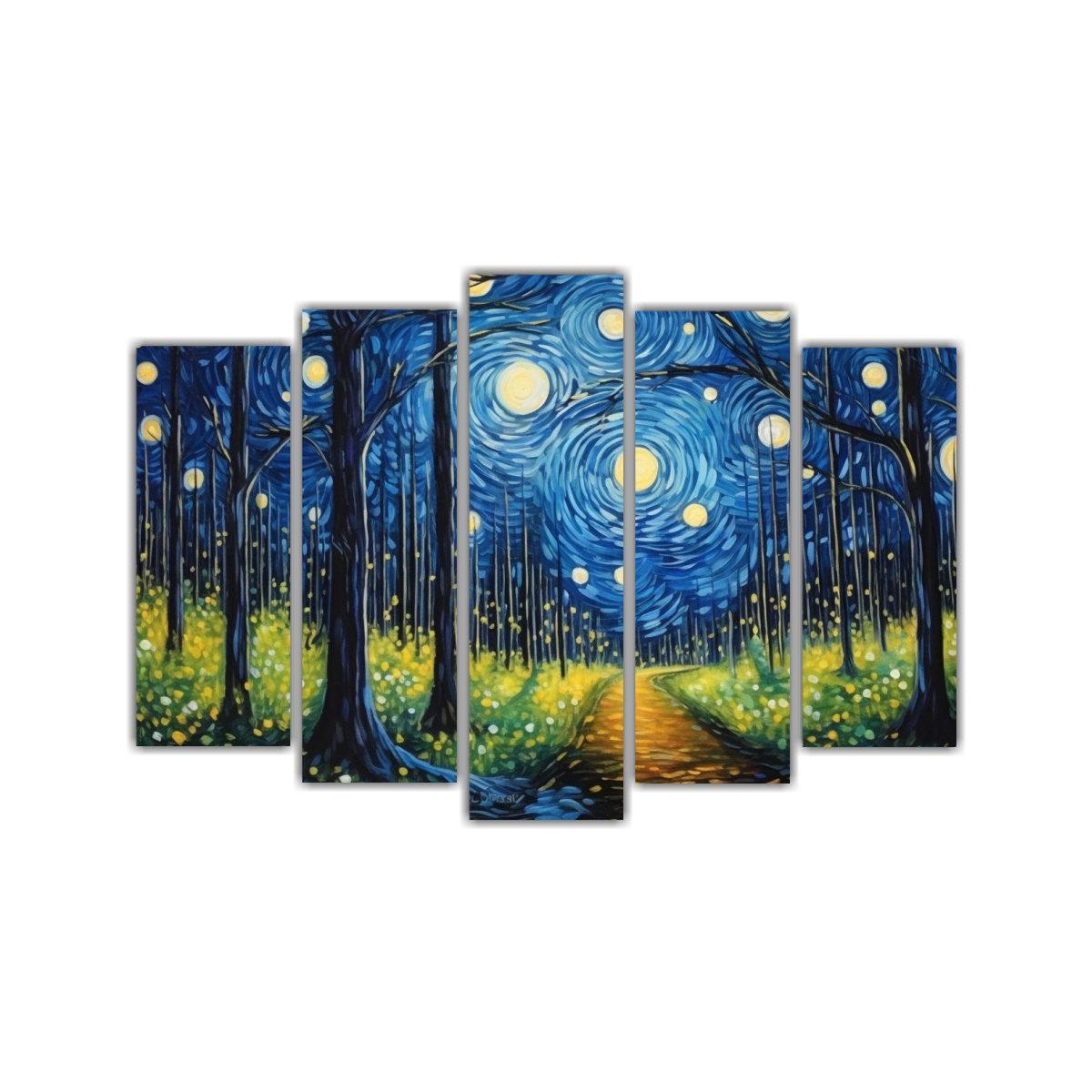 Cuadro Tela Resistente Pintura Bosque Luciérnagas Estrella Vangogh