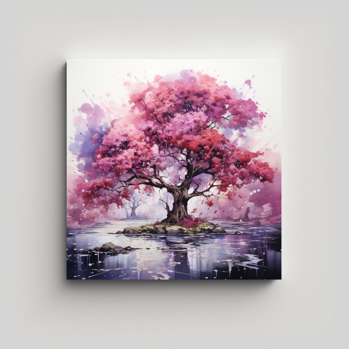 Cuadro Tela Sublimada Para Cuarto Árbol De Cerezo Colores Vibrantes Pintura Abstracta Acuarela
