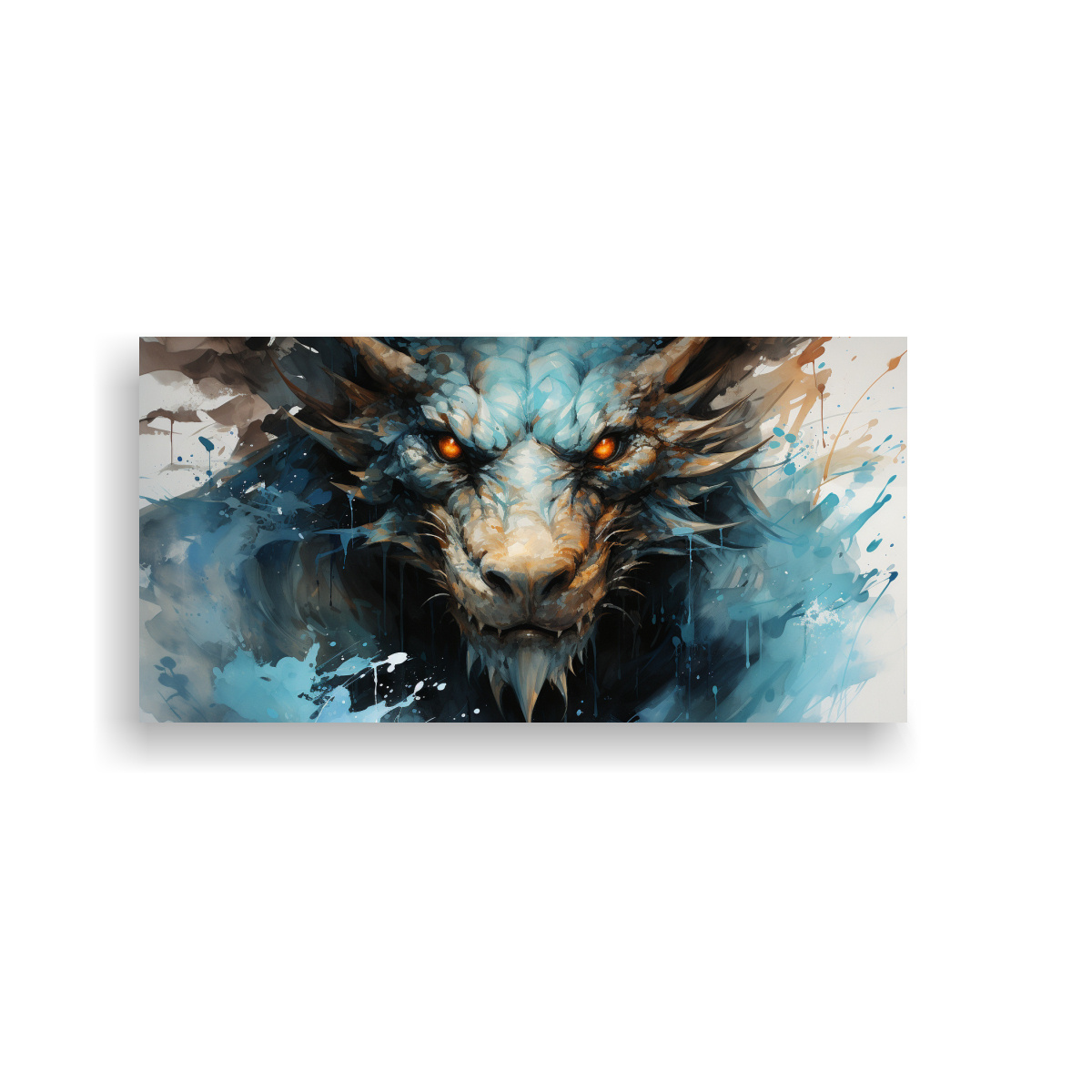 Cuadro Tela Vintage Dragón Acuarela Y Turquesa Estilo Neonoir